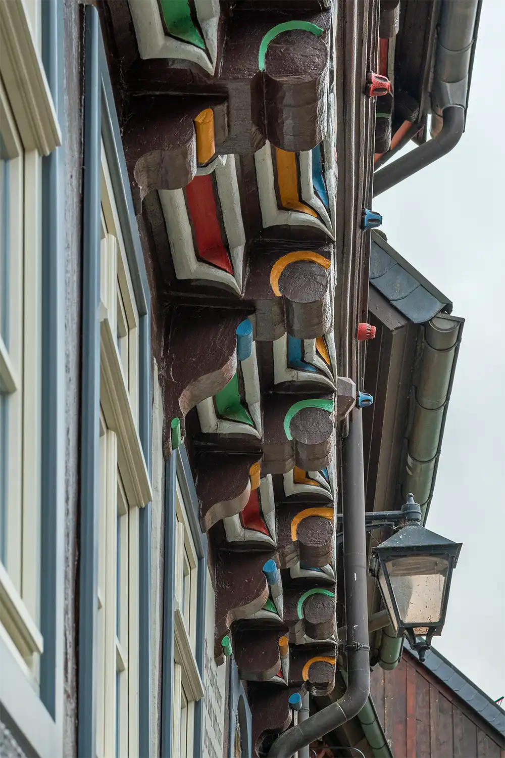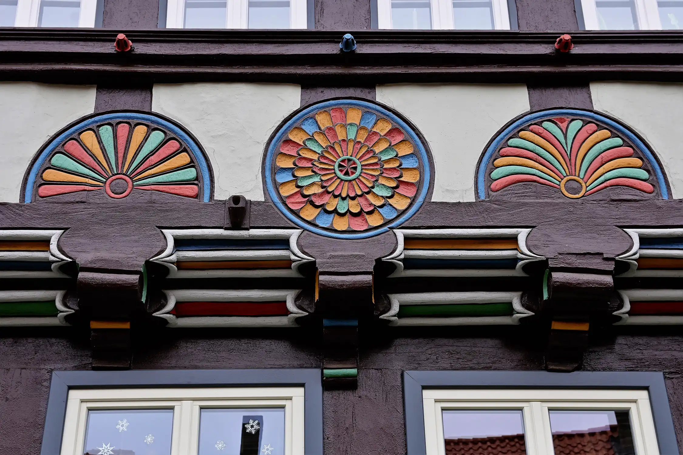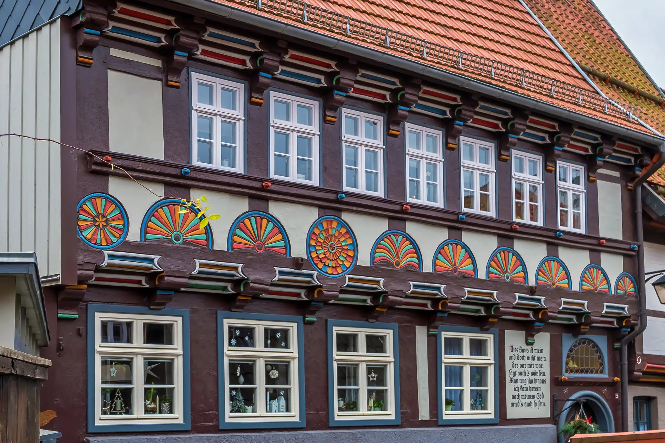 Augenfällig ist neben dem prächtigen Schmuck auch der Hausspruch: „Dies Haus ist mein und doch nicht mein. Der vor mir war, sagt auch es wär sein. Man trug ihn hinaus, ich kam herein. Nach meinem Tod wird’s auch so sein.“ Er stammt aus dem 19. Jahrhundert und wurde den Besitzern zur Silbernen Hochzeit geschenkt.
