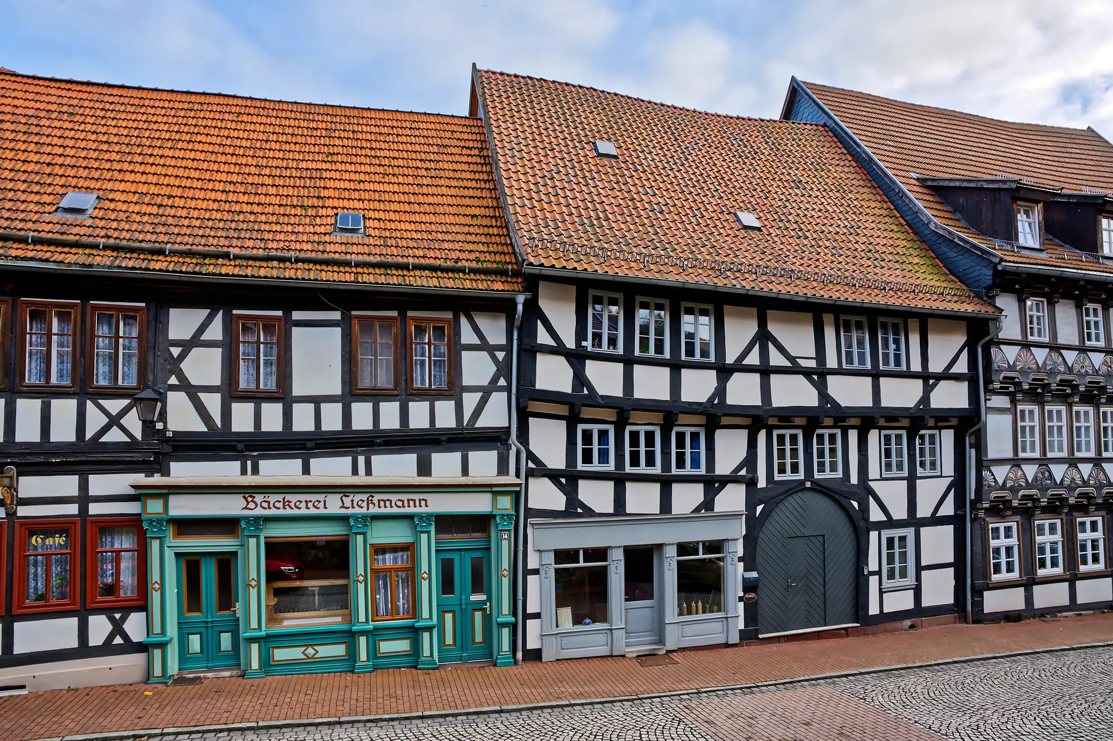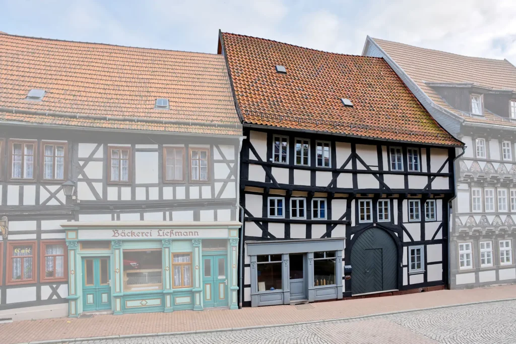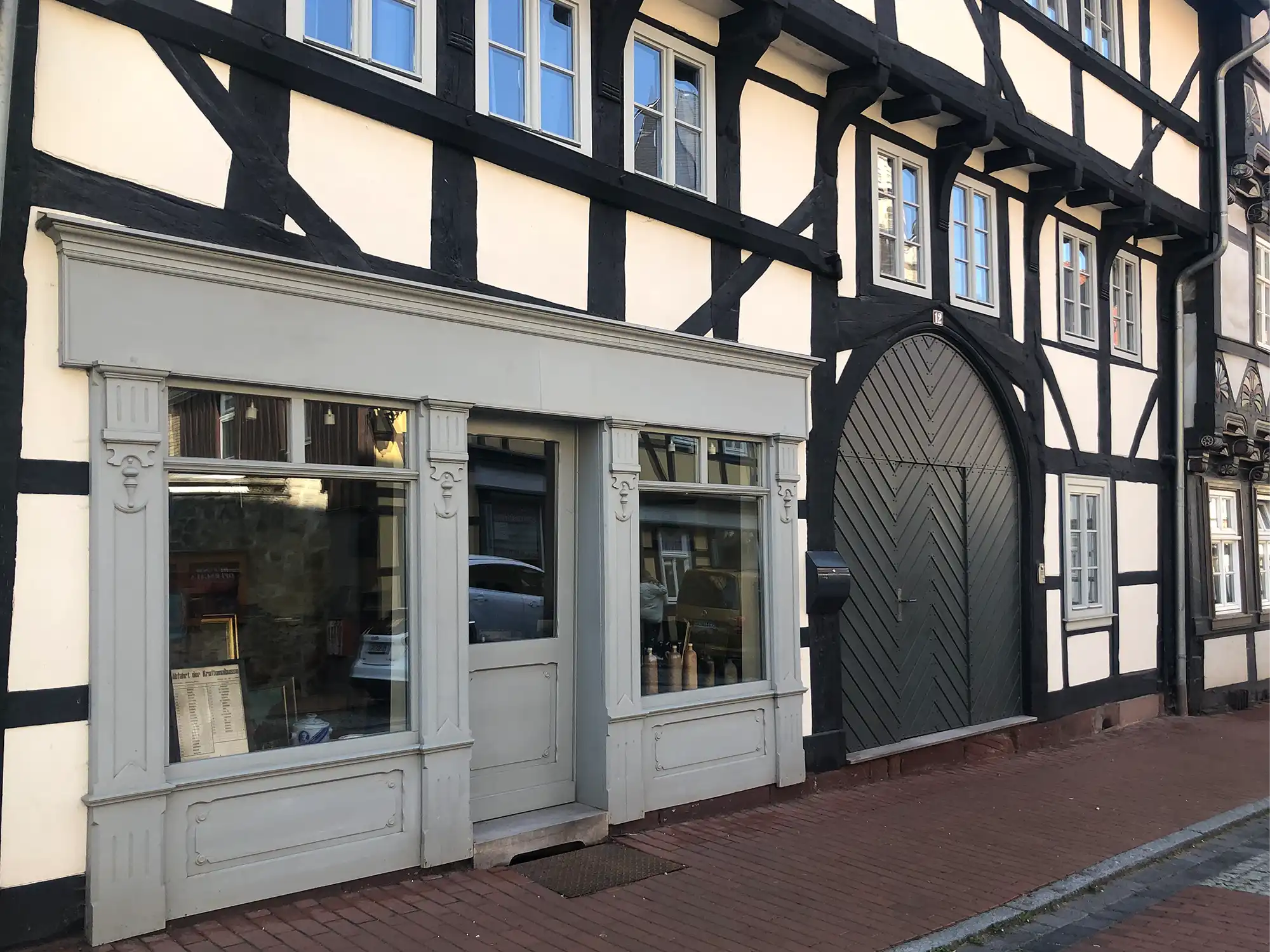 Das eindrucksvolle Fachwerkhaus zeigt sich mit vorkragendem Obergeschoß, großem Tor und Diele als gotische Stilelemente. …